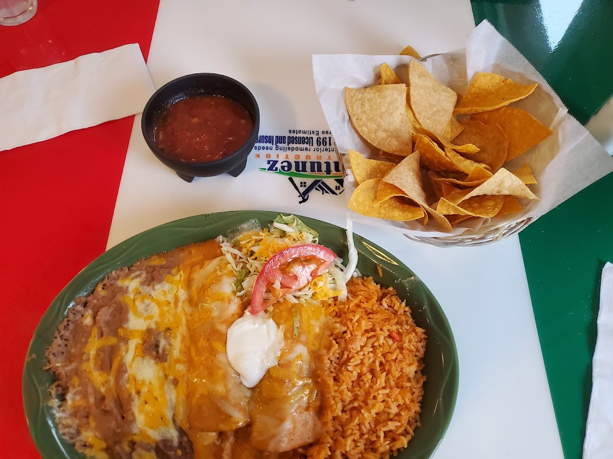 Really liked this place, I ordered a chicken burrito, it's shredded chicken, cheese with sides of rice and refried beans, I would recommend, it's delicious and authentic. I was really surprised by the portion size! I love the Christmas decorations it was warm and cozy in there. The complimentary salsa and chips were really fresh and delicious!